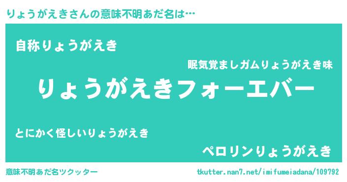 | 女子向けラノベタイトル風あだ名 | 『りょうがえきの雑貨屋さん』 |