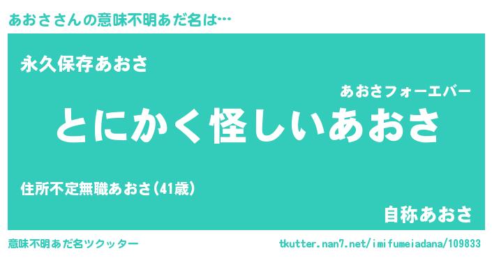 | ポケモン風あだ名 | 『ヒアオサ』『ゼニアオ』 |