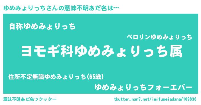 | 欧米人風あだ名 | 『トリンドルゆめみょりっち』 |