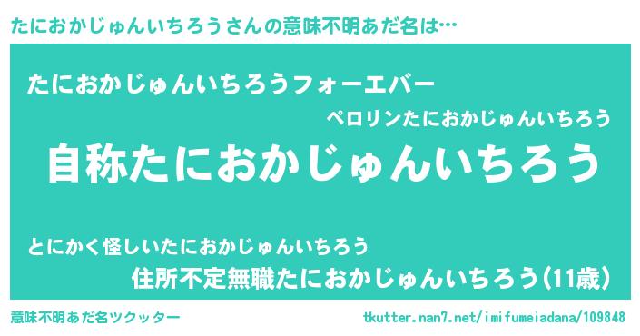 | 肩書あだ名 | 『たにおかじゅんいちろう閣下』 |