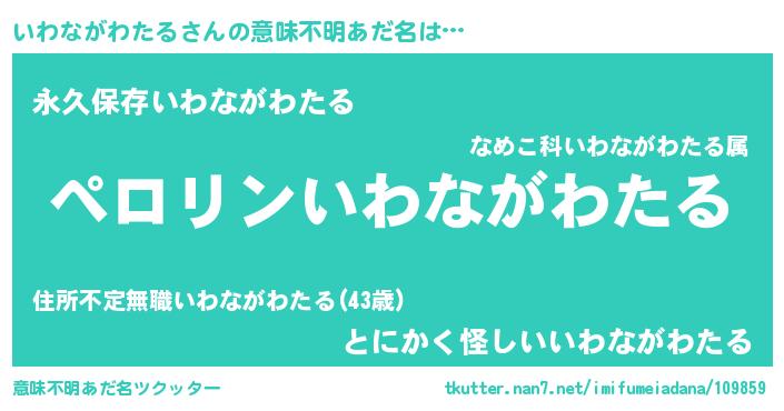 | 男性向けラノベタイトル風あだ名 | 『イワナガワタルアートオンライン』 |