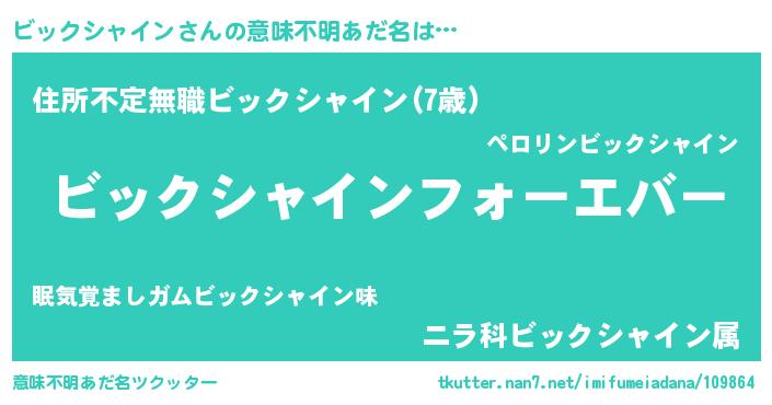 | 男性向けラノベタイトル風あだ名 | 『やはりビックシャインの青春ラブコメはまちがっている 』 |