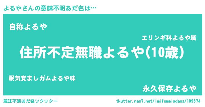 | ヒーロー風カッコイイあだ名 | 『仮面ヨルダー』『超時空戦士ヨルヤ』 |