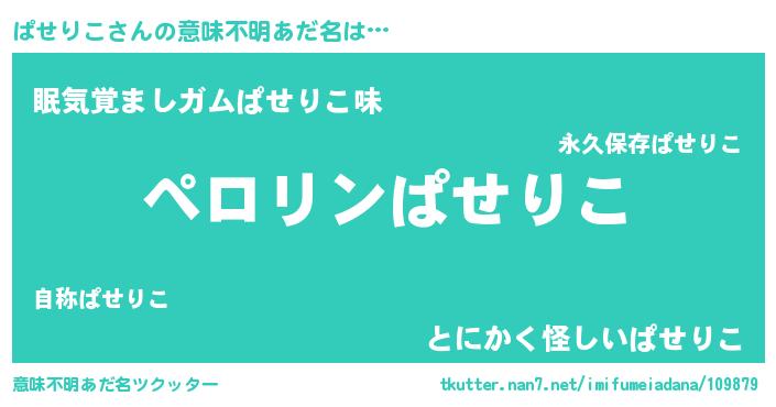 | 男性向けラノベタイトル風あだ名 | 『ぱせりこの憂鬱』 |