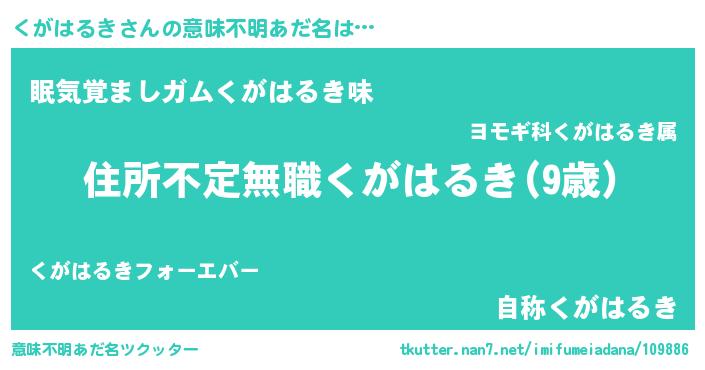 | ヒーロー風カッコイイあだ名 | 『仮面クガダー』『慈愛の使者くがはるき』 |