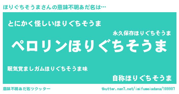 | 胡散臭い通販商品みたいなあだ名 | 『モテモテ間違いなし霊験あらたかなお札…その名も「ほりぐちそうま」』 |