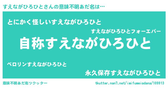 | 男性向けラノベタイトル風あだ名 | 『すえながひろひとに滅ぼされるだけの簡単なお仕事です』 |