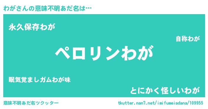| 2回繰り返すあだ名 | 『わがわが』『けちょんけちょん』 |