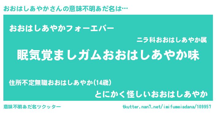 | 欧米人風あだ名 | 『ダニエルおおはしあやか』 |