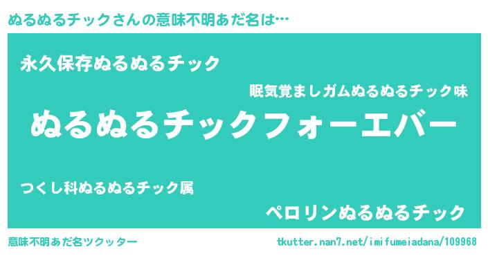 | 伝説のあだ名 | 『秘められし忍者ぬるぬるチック』 |