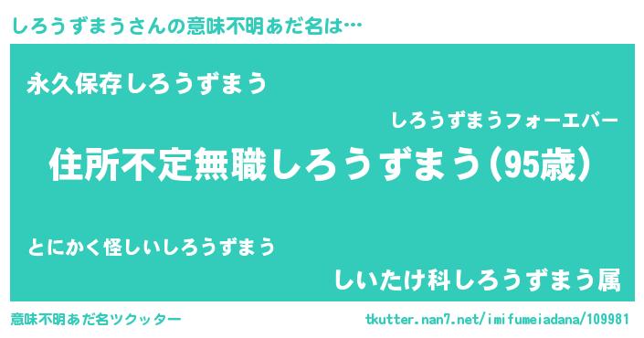 | ヘコむあだ名 | 『しろうずまう(遠い目)』『つくし』 |