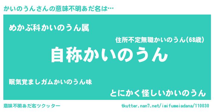 | 肩書あだ名 | 『かいのうん閣下』『かいのうん少将』 |