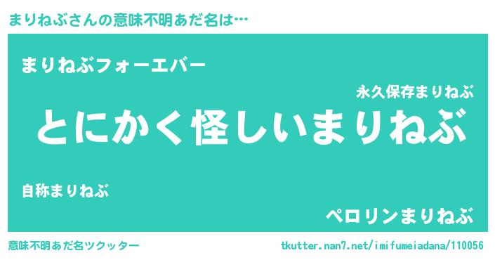 | 欧米人風あだ名 | 『ウサインまりねぶ』『マイケルまりねぶ』 |