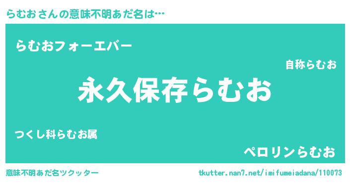 | 男性向けラノベタイトル風あだ名 | 『らむおという概念が存在しない退屈な世界 』 |