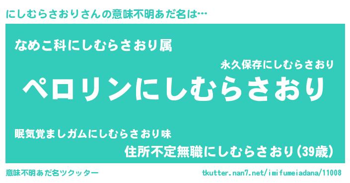 | ヘコむあだ名 | 『にしにー』『にしむらさおり(笑)』 |