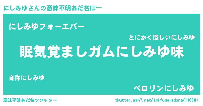 | 男性向けラノベタイトル風あだ名 | 『うちのにしみゆが世界を掌握している!』 |