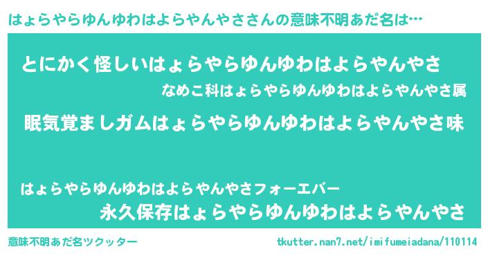 | ヒーロー風カッコイイあだ名 | 『正義の使者はょらやらゆんゆわはよらやんやさ』 |