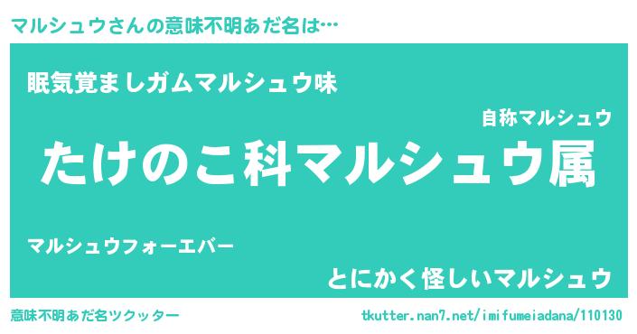 | 男性向けラノベタイトル風あだ名 | 『転生したらマルシュウだった件』 |