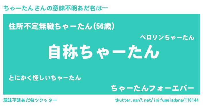 | 男性向けラノベタイトル風あだ名 | 『Re:ちゃーたんから始める異世界生活』 |