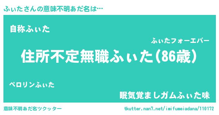 | 自動車の名前っぽいあだ名 | 『フウディ』『メルフィス・フンツ』 |