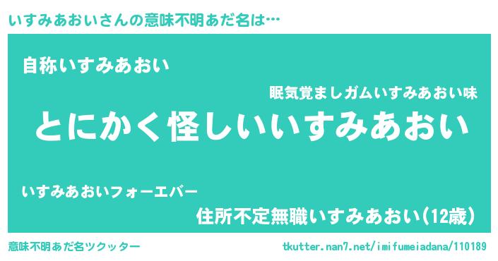 | 男性向けラノベタイトル風あだ名 | 『いすみあおいの嫁は女の子じゃないと思った?』 |