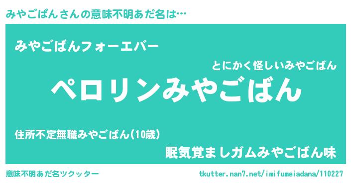 | ヘコむあだ名 | 『みやにゅー』『豆乳』『みやを』 |