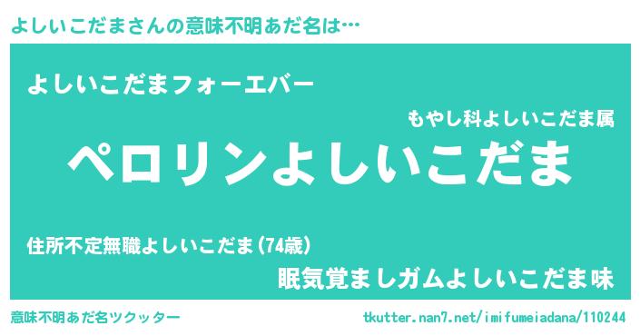 | 欧米人風あだ名 | 『よしいこだま・ステッグマイヤー』 |