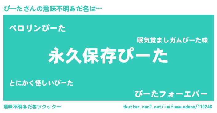 | ヘコむあだ名 | 『ぴーた(苦笑)』『ぴーふぇ~』 |