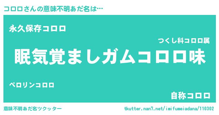 | ヘコむあだ名 | 『コロロ(爆)』『コロっふぃ~』 |
