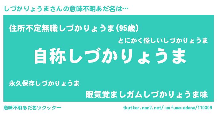| ヘコむあだ名 | 『しづぷりん』『しづかりょうま(遠い目)』 |