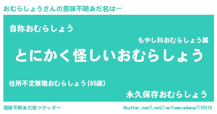 | 女子向けラノベタイトル風あだ名 | 『おむらしょう様がみてる』 |