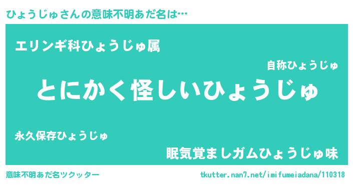 | 胡散臭い通販商品みたいなあだ名 | 『信頼と実績のサプリメント…その名も「ひょうじゅ」』 |