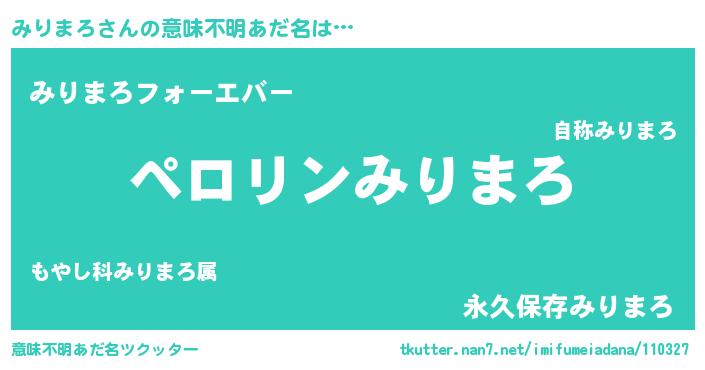 | 欧米人風あだ名 | 『マイケルみりまろ』 |