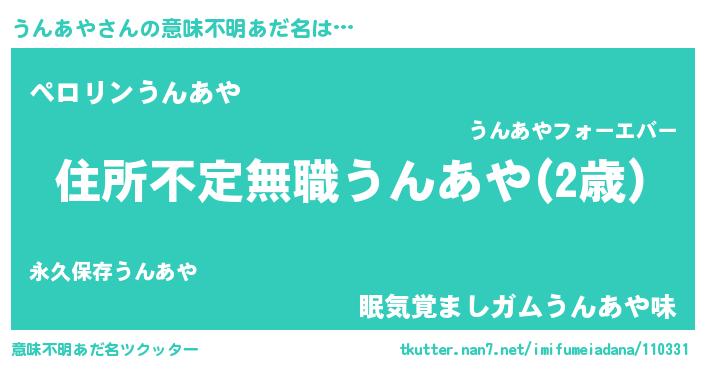 | 欧米人風あだ名 | 『うんあや・ステッグマイヤー』 |