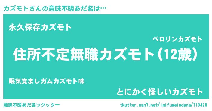 | ヒーロー風カッコイイあだ名 | 『仮面カズダー』『ネオカズモト』 |