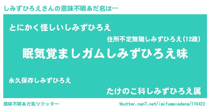 | ヘコむあだ名 | 『しみお』『しみずひろえ(爆)』 |