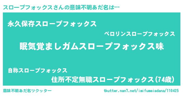 | 女子向けラノベタイトル風あだ名 | 『スロープフォックス恋絵巻』 |
