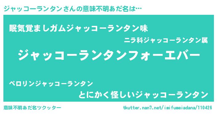 | 欧米人風あだ名 | 『ジャッコーランタンクリステル』 |