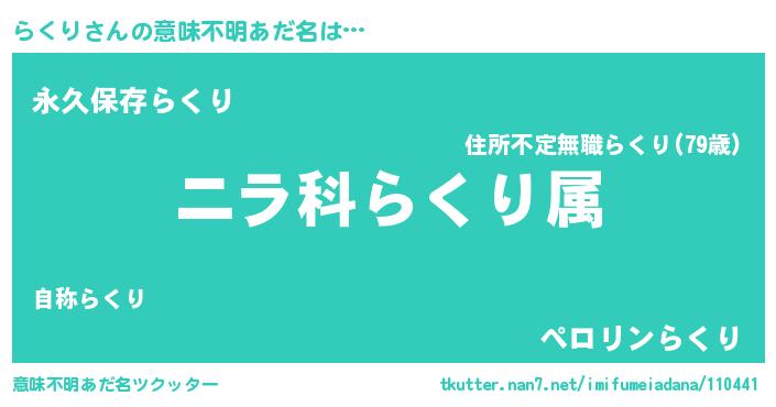 | ヘコむあだ名 | 『らくり(遠い目)』『らくにー』 |