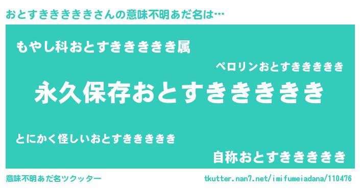 | 男性向けラノベタイトル風あだ名 | 『おとすきききききという概念が存在しない退屈な世界 』 |