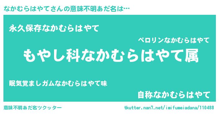 | 料理風あだ名 | 『なかむらはやてとほうれんそうの和風グラタン』 |