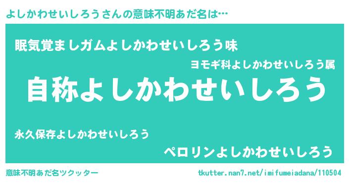 | 欧米人風あだ名 | 『ケンブリッジよしかわせいしろう』 |