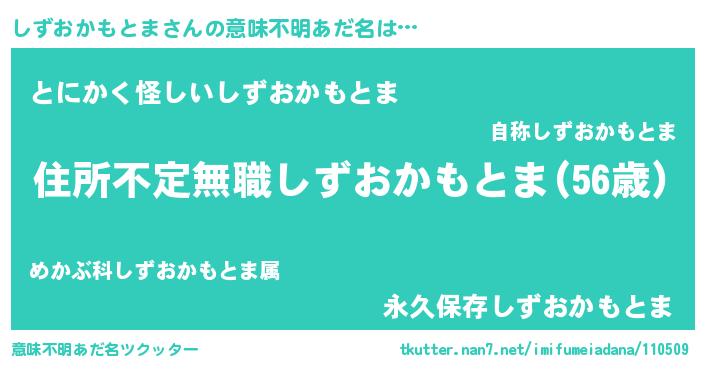 | 伝説のあだ名 | 『孤高の僧侶しずおかもとま』 |