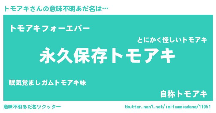 | 胡散臭い通販商品みたいなあだ名 | 『来世でも幸せになれる健康食品…その名も「トモアキ」』 |