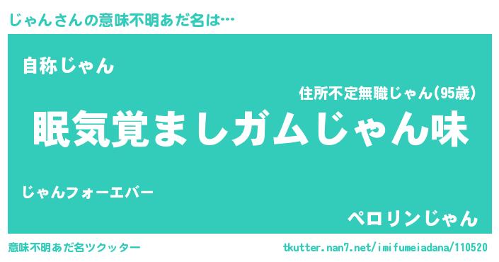 | ヒーロー風カッコイイあだ名 | 『慈愛の使者じゃん』『超時空戦士ジャン』 |
