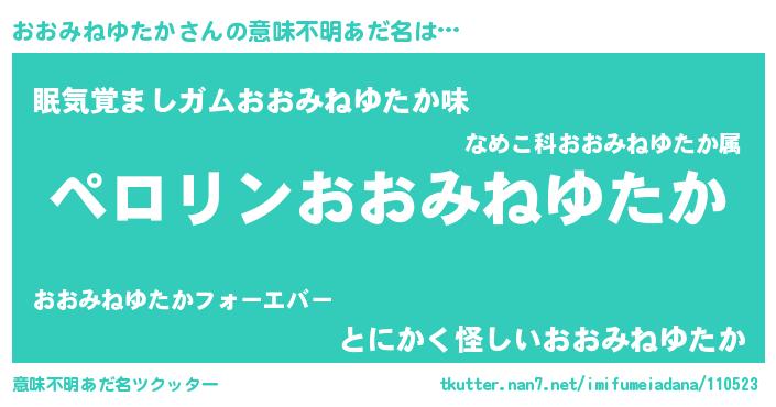 | 男性向けラノベタイトル風あだ名 | 『オオミネユタカアートオンライン』 |