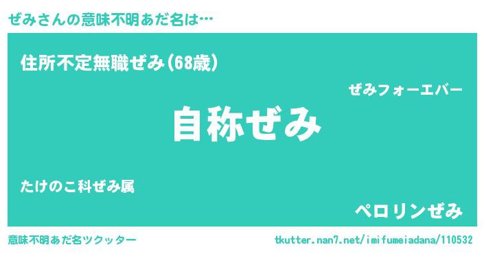 | ヘコむあだ名 | 『ぜみにゅー』『つくし』『ぜみを』 |