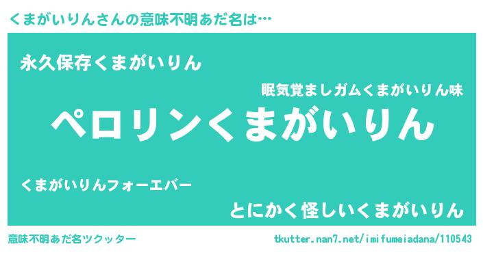 | ヒーロー風カッコイイあだ名 | 『スーパークマガイリン』『暗黒騎士クマ』 |