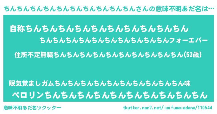 | 恥ずかしいあだ名 | 『チンチンチンチンチンチンチンチンチンチンデラックス』 |
