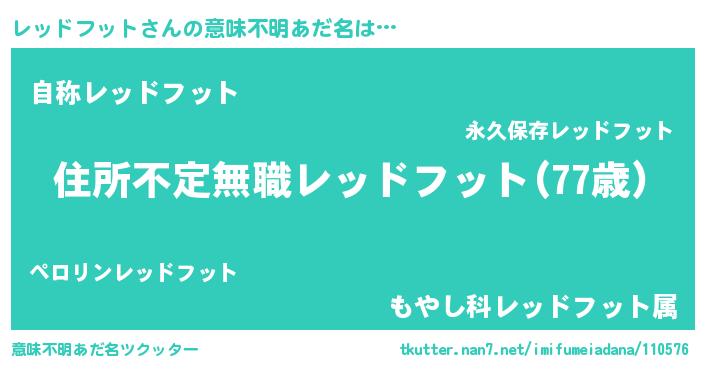 | 男性向けラノベタイトル風あだ名 | 『この素晴らしい世界にレッドフットを!』 |